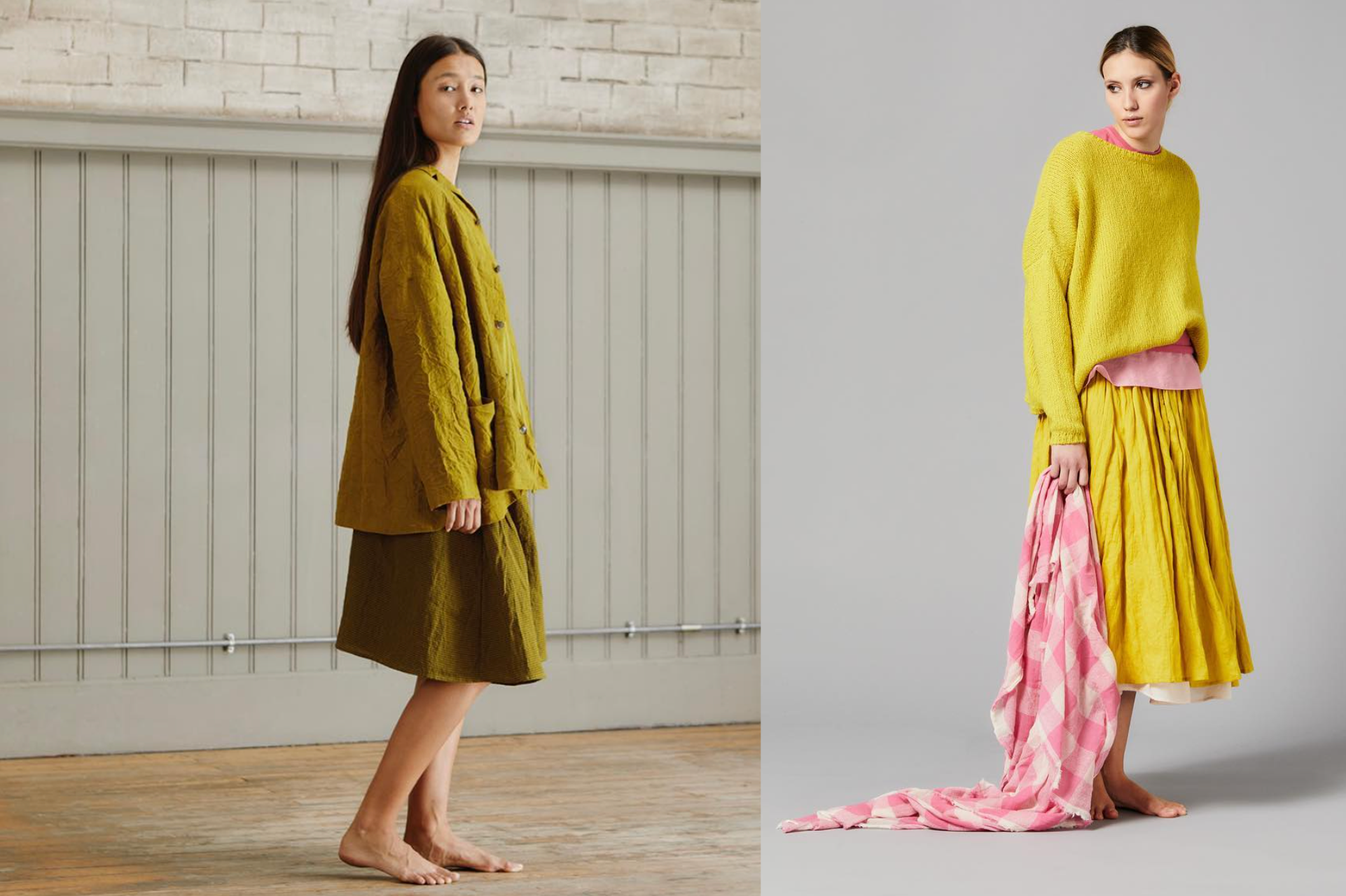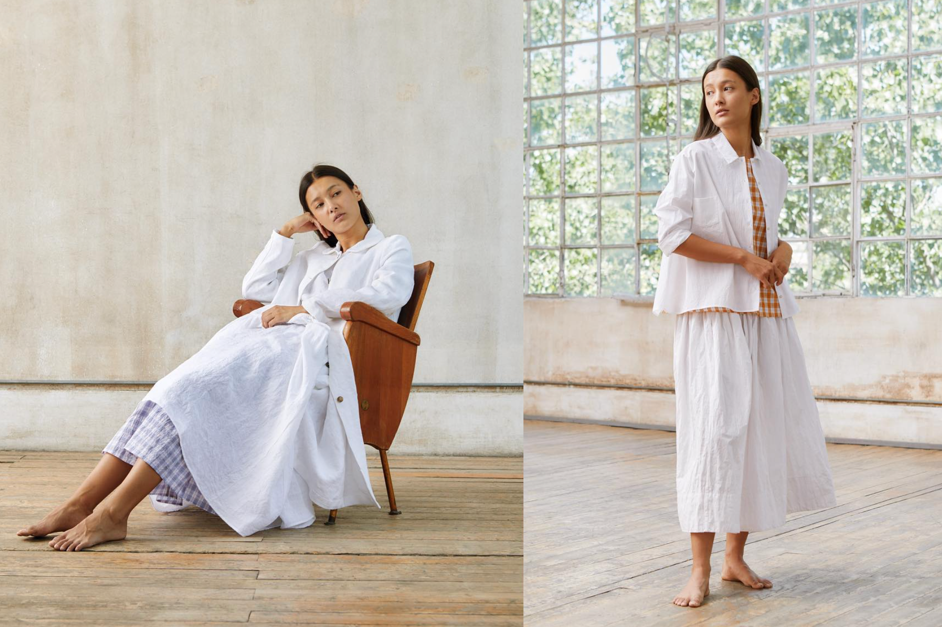 Specializing in natural materials like gauze, voile, linen, cotton, washed wools, cashmere, heavy cotton, and felt, she skillfully shapes these pure fabrics into timeless silhouettes, epitomizing her commitment to enduring elegance.