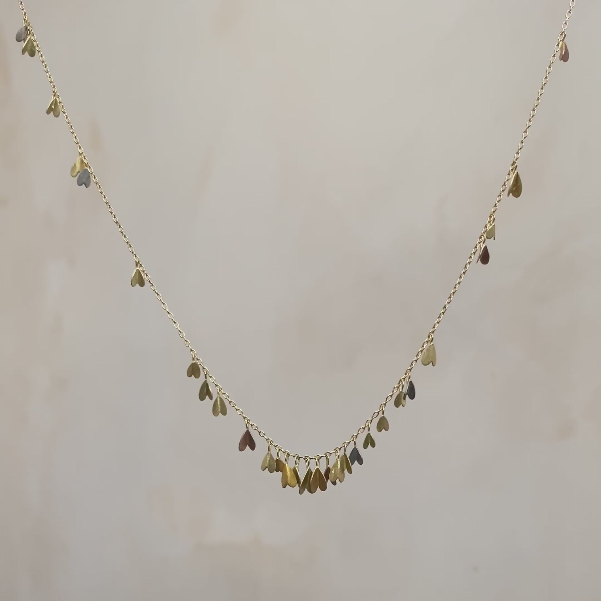 The tiniest wings in rainbow golds scattered around a fine gold chain.