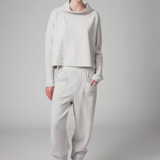 Transit Comfort Fit Turtleneck Knit in micro-patterned wool and cotton Chalk