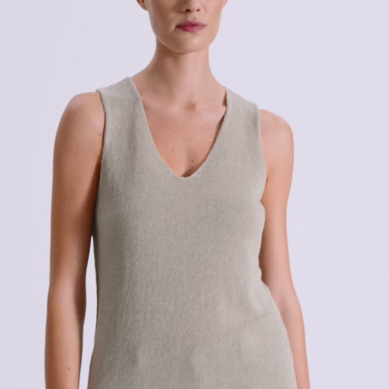 Transit Wide-Shoulder Tank Top in Linen and Cotton Knit in Plain Stitch Pearl Grey